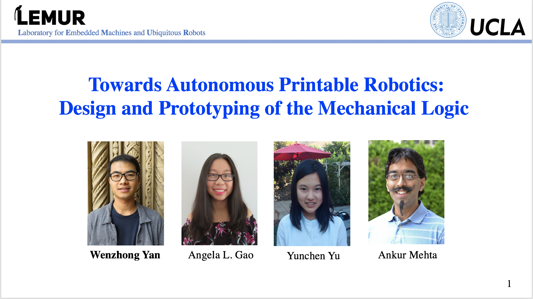Last Friday, I presented the printable controller, the mechanical logic, in ARR 2019. I got lots of feedbacks regarding fully printable robots. People are really interested in how will we make the robots fully printable. Thanks for all of the help from my group.