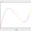These two graphs are based on my Matlab simulations of the behavior of a pre-compressed bistable beam under a point force. The segmented one is the actual data due to some errors, but the adjusted version of the graph (ideally elinimating some errors in calculation) matches the results in previous r...