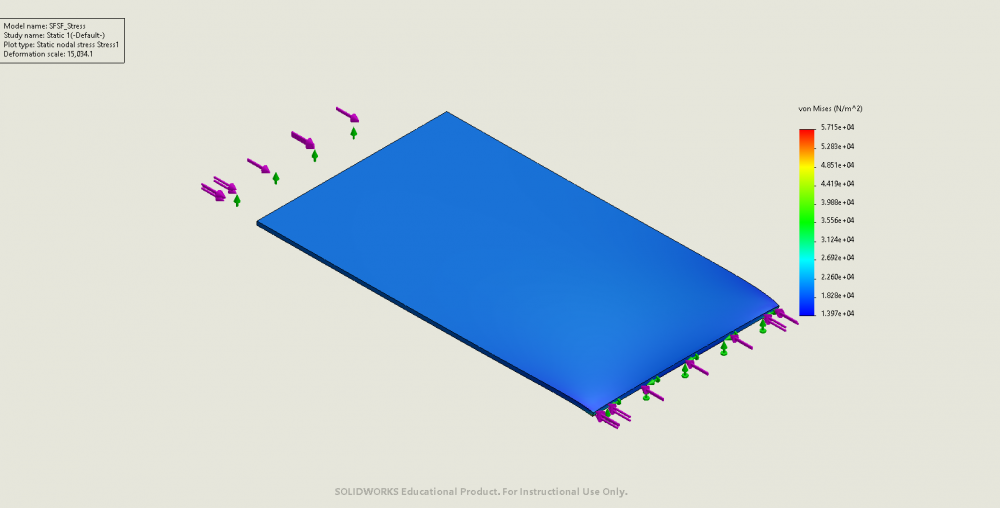 - Critical buckling load from analytical solutions: 52.6N on short edges