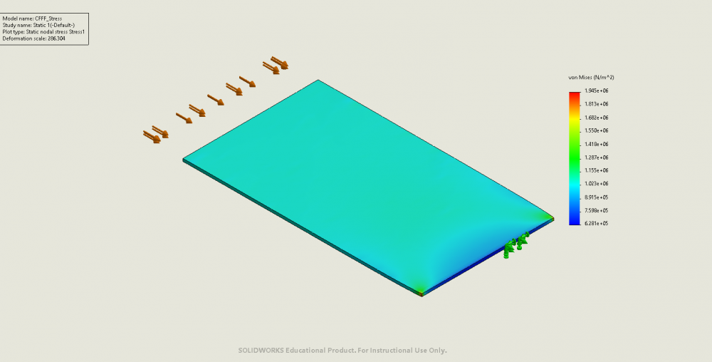 - Critical buckling load from analytical solutions: 7340N/m along the short edges, or 367N on short edges.