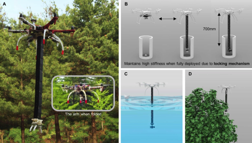 1. Kim et al. 2018: a foldable robot arm. The design needs to be relatively rigid and lightweight in order to be mounted to the UVA.