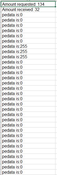 Above is a sample reading which is done by my code. Note that pdata is a dummy variable that stores each byte received from each reading.