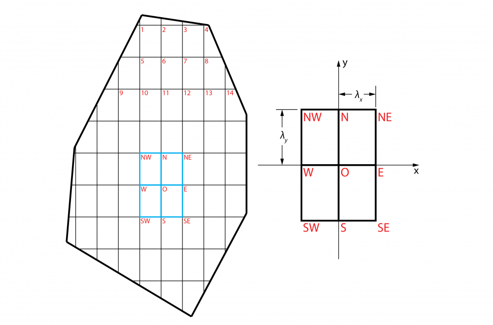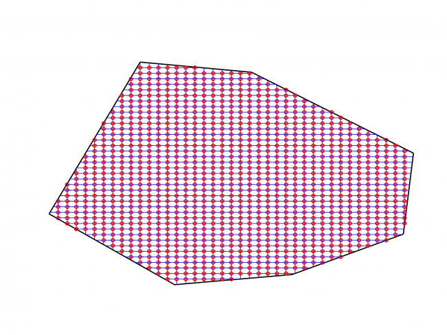Given a random polygon, I first devide it into rectangulars. Then I label points at intersections.