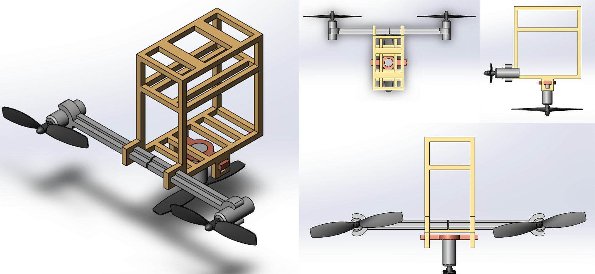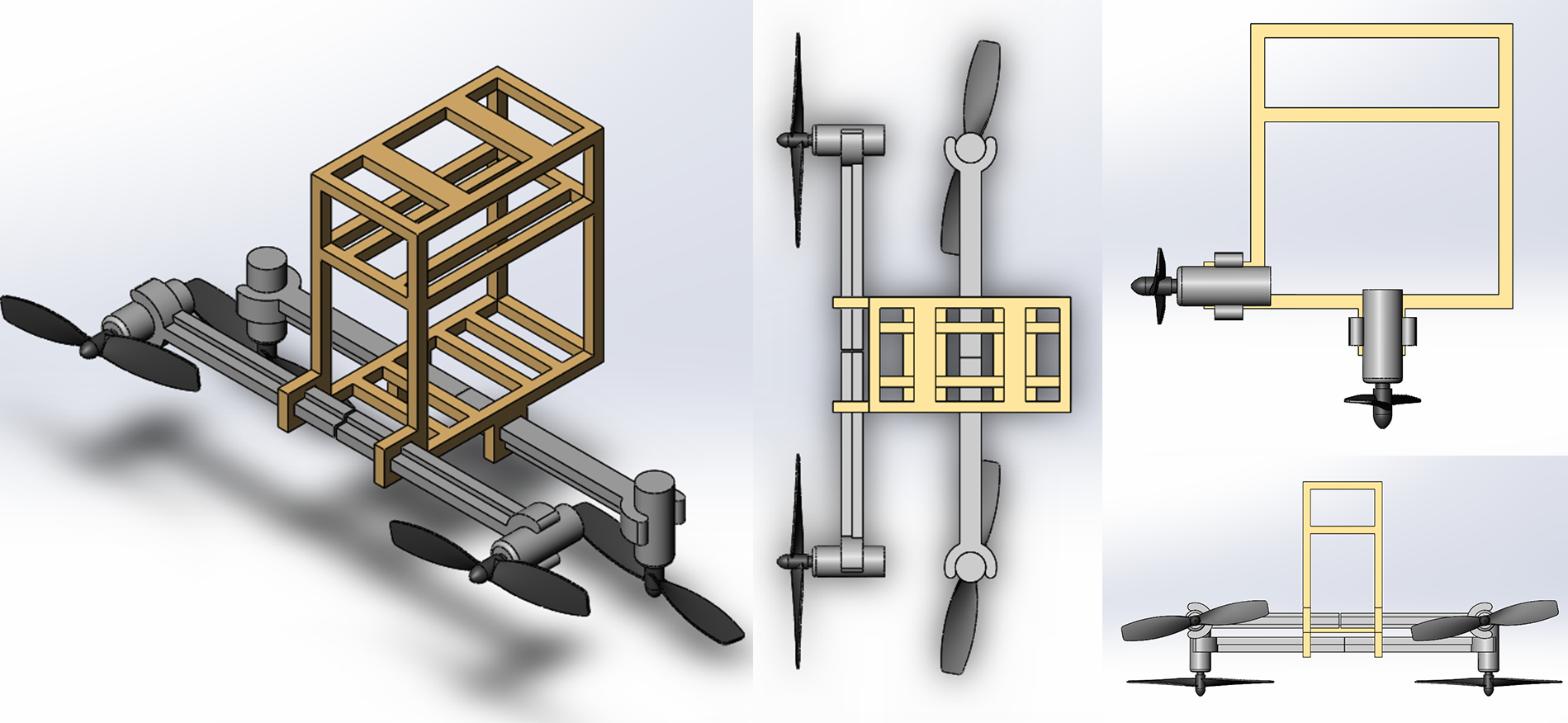 We designed a reconfigurable gondola and motor beam that could allow us to test different thrust configuration efficiently.