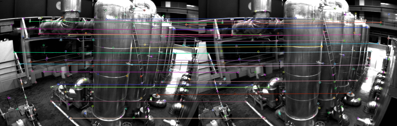 Before feature matching, I discarded those features with large distance. The matching is simply done by brute force between consecutive images. I checked by my own eyes that there is not mismatching.