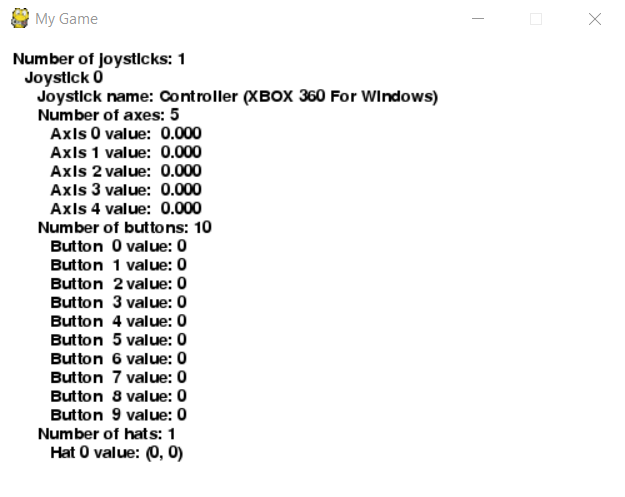 D-pad (Left,right,up,down) Hat 0 (-1,0) (1,0) (0,1) (0,-1)