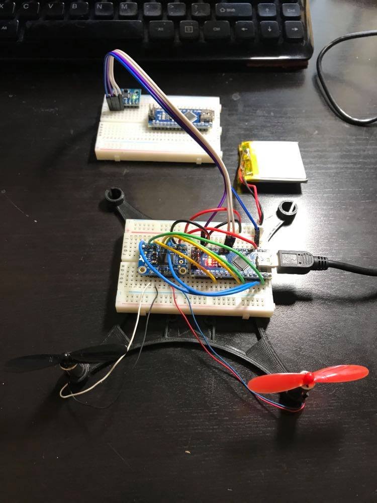 I then integrated the IMU software with the motor control software and added functionality for motors to be driven based on the IMU's orienation (currently only a proportional controller is implemented). The experimental setup and operation can be seen below.
