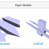 I have begun testing different designs for mounting servos and DC motors in any orientation and at any position on each of the boat hull morphologies, as shown in these photos: servoMountDesigns.pdf. I'm testing them by hand first (using tape and scissors), before sending them off to Jill for her...