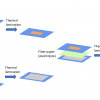 The basic fabrication porocess of the proposed printable battery is shown as the figure. We need to firstly combine the electrodes (Zinc or copper file with pouch sheet), which is completed by thermal lamination, resulting in composite electrodes. It is wotrhting noting that we need to cut a hole on...