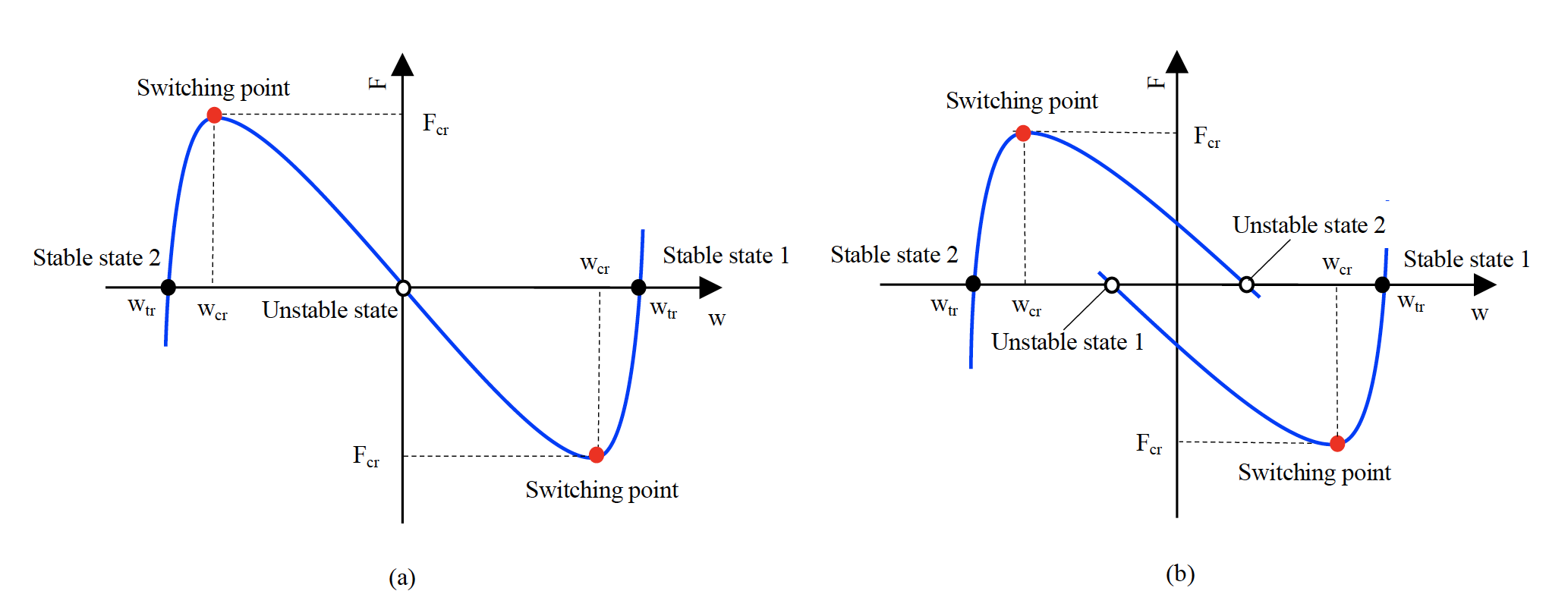 I keep revising our paper for the pasting week. Especialliy, we added a figure to demonstrate the snap-through properties of bistable buckled beams and corresponding critical behavioral values (i.e. critical force, critical displacement and travel) ,as shown below.