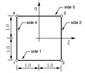 A figure of (\(\zeta\), \(\eta\)) domain, a quadrilateral element: