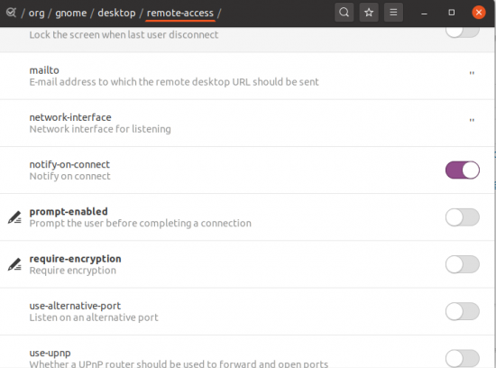 • After setting this, the screen still cannot be shared. You need to configure dconf-Editor, using the following commands: