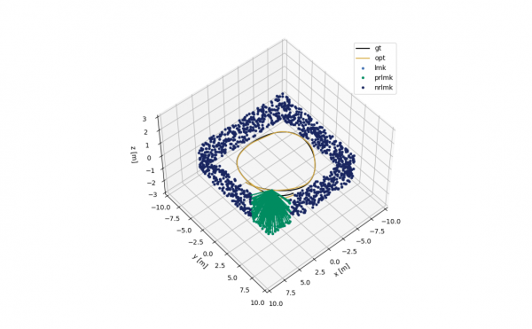 The above figure shows all trajectories, and landmarks (lmk, navy) and feature points (plmk, green).