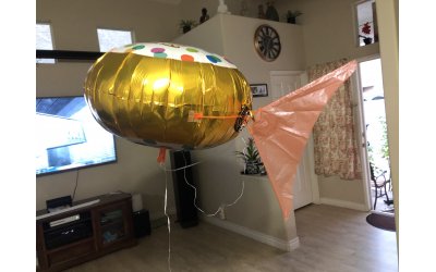 As you can see, the weight of the flapping mechanism was once again past the maximum payload of the balloon and as a result, I decided to attach 2 of the the smaller helium balloons on top and the result is pictured below.