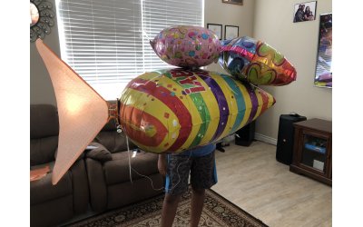 For my second trial of these tests, I went to Party City and sought to buy significantly larger balloons. I bought two balloons; one is a trianglular shape and the other is a circular shape.