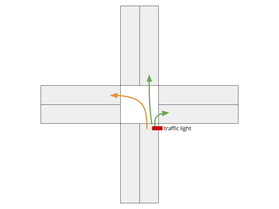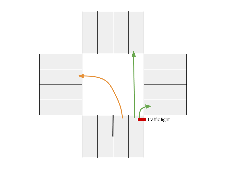 • The destination of each car is different. The left-turn takes more time, since it may collide with the cars from the opposite direction.