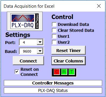 Open up PLX-DAQ spreadsheet; click OK on the dialogue box. Then this will show up: