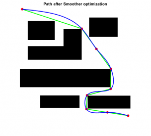 I finished the way point smoother optimization algorithm to replace B-spline curve algorithm to make sure the final smoother path will not collide with obstacles.